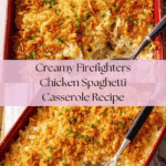 Firefighters Chicken Spaghetti is a creamy, comforting casserole that’s perfect for family dinners. Loaded with tender chicken, melted cheese, and a crunchy cornflake topping, this dish is both hearty and satisfying.