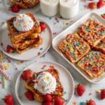 This Fruity Pebbles French Toast recipe transforms classic French toast into a colorful, crunchy breakfast treat with a delightful cereal coating. Thick slices of brioche or Texas toast are soaked in a cinnamon-vanilla egg mixture, coated with Fruity Pebbles cereal, and cooked to golden perfection on a griddle or skillet. Perfect for a fun weekend brunch or a special breakfast that kids and adults will both love.