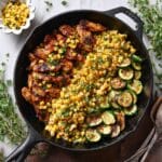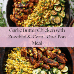 Keywords: garlic butter chicken, zucchini, corn, one-pan meal, quick dinner, healthy chicken recipe, stovetop chicken