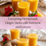 This zesty and invigorating Ginger Shots recipe combines the spicy kick of fresh ginger with the bright citrus flavors of lemon and orange, complemented by warming turmeric, a hint of cayenne, and a touch of honey. Perfect for a quick health boost or a natural energy kick-start to your day, these shots are easy to prepare and packed with antioxidants and anti-inflammatory benefits.