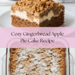 This Gingerbread Apple Pie Cake is a delightful fusion dessert combining the warm, spicy flavors of gingerbread cake with a layer of tender, cinnamon-sweetened apples and a buttery crumble topping. Baked to perfection, this 8×8-inch cake offers a moist, flavorful treat perfect for fall or holiday gatherings.