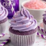 - Garnish and serve: Sprinkle the finished cupcakes with purple sparkling sugar if desired. Serve and enjoy your colorful grape soda cupcakes.