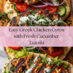Keywords: Greek chicken gyros, Mediterranean chicken recipe, grilled chicken gyros, tzatziki sauce, easy Greek recipe, pita bread gyros