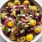This Greek potato salad is a vibrant and tangy dish that’s full of bold Mediterranean flavors. Featuring tender potatoes, sun-dried tomatoes, and tangy feta, it’s a refreshing mayo-free alternative perfect for any gathering.