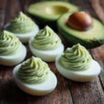 This Guacamole Deviled Eggs recipe combines creamy avocado with classic deviled egg flavors for a fresh, flavorful appetizer. The smooth guacamole filling, accented with lime juice, garlic, onion powder, and cilantro, replaces traditional mayonnaise for a healthier twist. Finished with a dash of smoked paprika, these deviled eggs offer a vibrant and satisfying snack or party finger food.