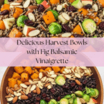 Keywords: harvest bowl, roasted vegetables, butternut squash, Brussels sprouts, wild rice, fig balsamic vinaigrette, gluten free, seasonal recipe