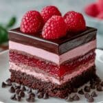 Keywords: chocolate mousse cake, raspberry chocolate cake, layered chocolate dessert, elegant chocolate cake, fruit mousse cake