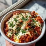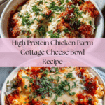 This High Protein Chicken Parm Cottage Cheese Bowl is a nutritious and delicious take on the classic chicken parmesan. Layered with creamy cottage cheese, savory grilled chicken, rich marinara sauce, and topped with melted mozzarella and Parmesan cheeses, this dish offers a satisfying high-protein meal that’s perfect for lunch or dinner. Easy to prepare and baked to perfection, it combines wholesome ingredients with bold Italian flavors for a healthy comfort food experience.
