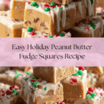 These Holiday Peanut Butter Fudge Squares are a festive treat perfect for sharing during the holiday season. Creamy, rich, and topped with crushed candy canes and sprinkles, they bring a delightful combination of flavors and colors to any celebration.