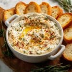 This Hot Honey Boursin Dip is a luscious blend of creamy Boursin cheese, cream cheese, and mozzarella, combined with the sweet, spicy kick of hot honey. Baked to golden perfection and garnished with fresh thyme and red pepper flakes, it makes a perfect warm appetizer served alongside bread, crackers, or fresh vegetables.