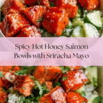 These Hot Honey Salmon Bowls with Sriracha Mayo are a perfect blend of sweet, spicy, and savory flavors. Tender salmon cubes are roasted to perfection, glazed with a vibrant hot honey sauce, and served over fluffy rice with a refreshing cucumber and avocado salad. Topped off with a creamy sriracha mayo, this dish is balanced, colorful, and bursting with flavor—ideal for a quick weeknight dinner or a satisfying lunch.
