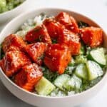 This Hot Honey Salmon Bowl with Sriracha Mayo is a vibrant and flavorful dish that combines tender roasted salmon with a sweet and spicy honey glaze. Paired with a fresh cucumber avocado salad and a creamy sriracha mayo drizzle, it’s a satisfying meal perfect for any night of the week.