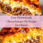 This homemade cheeseburger pie is a comforting and delicious twist on a classic favorite. Combining seasoned ground beef, melted cheddar, and a creamy egg mixture, it’s an easy bake that comes together quickly and satisfies the whole family.