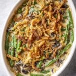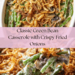 Keywords: green bean casserole, Campbell’s cream of mushroom soup, crispy fried onions, classic side dish, holiday casserole, creamy green beans