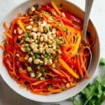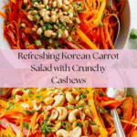 Keywords: Korean carrot salad, Korean salad, carrot salad recipe, healthy side dish, gluten free salad, easy salad, vegan salad, cashew garnish, sesame dressing