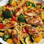 A vibrant and healthy Lemon Chicken & Veggie Orzo Stir Fry featuring tender chicken breast, colorful vegetables, and perfectly cooked orzo pasta tossed in a zesty lemon-soy sauce. This quick and flavorful stir fry is perfect for a nutritious weeknight dinner.