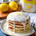 Keywords: lemon poppy seed pancakes, lemon pancakes, breakfast pancakes, fluffy pancakes, lemon glaze pancakes