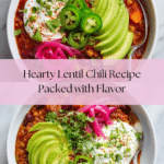 Keywords: lentil chili, vegetarian chili, plant-based chili, lentil stew, vegan chili, healthy chili, meatless chili, comforting dinner