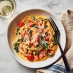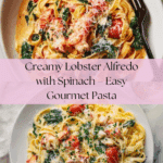This Lobster Alfredo with Spinach is a luxurious creamy pasta dish featuring tender chunks of cooked lobster, fresh spinach, and a rich homemade Alfredo sauce made with garlic, heavy cream, and Parmesan cheese. Perfect for a special dinner or celebratory meal, this elegant recipe combines the delicate flavors of seafood with creamy, cheesy pasta for a comforting yet sophisticated meal.