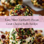 These Mini Cranberry Pecan Goat Cheese Balls make a delightful appetizer that’s both festive and flavorful. Creamy goat cheese blends with sweet honey and warm cinnamon, then gets rolled in a colorful mix of pecans, dried cranberries, and fresh parsley for the perfect bite-sized treat.