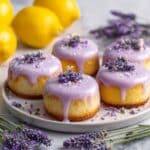 Keywords: mini lemon cakes, lavender glaze, lemon zest cake, floral glaze, mini cakes recipe, spring desserts, lemon dessert