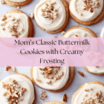 Mom’s Buttermilk Cookies are soft, tender, and lightly sweetened cookies with a delicate tang from buttermilk, topped with a smooth vanilla frosting and optional chopped walnuts for added crunch. These classic homemade cookies are perfect for any occasion and are quick to prepare and bake.