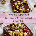 No bake superfood brownies are a delicious and healthy treat packed with nuts, seeds, and dried fruits. These bars are easy to make, require no oven, and deliver a rich chocolate flavor with nutritious ingredients.