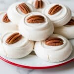 - Shape and set divinity: Line a baking sheet with wax or parchment paper. Lightly spray two spoons with non-stick cooking spray, then drop spoonfuls of the divinity mixture onto the sheet. Top each piece with a pecan half, or alternatively, fold chopped pecans into the batter before dropping.