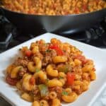 Keywords: one pot meal, American goulash, ground beef pasta, easy dinner, comfort food, stovetop recipe, quick pasta dinner