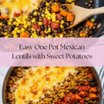 Keywords: Mexican lentils, one pot meal, vegetarian lentils, healthy lentil recipe, Mexican cooking, sweet potatoes, black beans, easy dinner