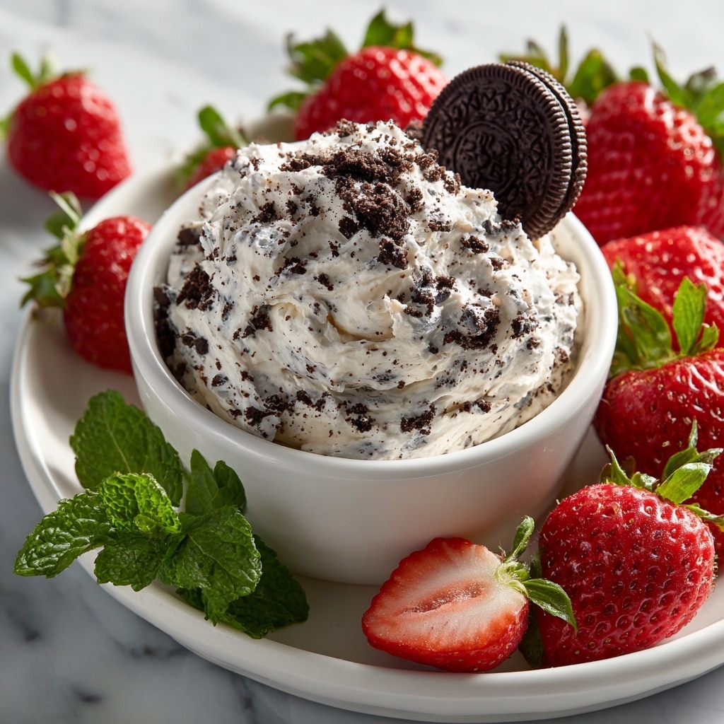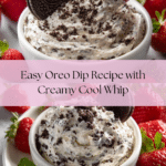 This delightful Oreo Dip is a creamy, sweet treat perfect for parties, gatherings, or a fun dessert at home. Made with softened cream cheese, powdered sugar, vanilla, and Cool Whip, it is mixed with crushed double-stuffed Oreos, creating a rich, smooth, and crunchy dip. Serve it chilled with a variety of dippers like strawberries, pretzels, or additional Oreos for an irresistible snack.