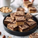 - Add the Swirl: Pour the melted peanut butter evenly over the base. Drizzle the melted chocolate over the top in lines or dollops, then use a toothpick or butter knife to swirl the two together in a marbled pattern.