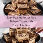 Keywords: Peanut Butter Rice Krispie Treats, no-bake treats, marshmallow bars, peanut butter dessert, chocolate swirl treats