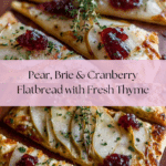 This Pear, Brie, and Cranberry Flatbread with Thyme is a perfect blend of sweet, savory, and aromatic flavors. Quick to assemble and bake, it makes an elegant appetizer or a light snack for any occasion.