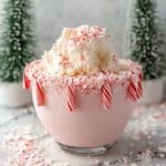 Keywords: holiday punch, peppermint punch, festive drink, creamy punch, Christmas punch, ice cream punch, peppermint extract, candy cane garnish