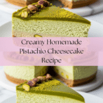 This Pistachio Cheesecake is a creamy, nutty delight perfect for special occasions or a luxurious everyday treat. Featuring a crunchy pistachio-graham cracker crust and a rich pistachio-flavored filling topped with white chocolate ganache, it’s sure to impress both visually and in flavor.