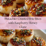 Pistachio-Crusted Brie Bites with Raspberry Honey Glaze are elegant, bite-sized appetizers perfect for any gathering. The creamy Brie pairs beautifully with crunchy pistachios and a sweet-tart raspberry glaze for a delightful balance of flavors.