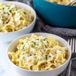 - Cook the noodles: Prepare the egg noodles according to the package instructions. Before draining, reserve ½ cup of the pasta cooking water, then drain the noodles and keep them warm.