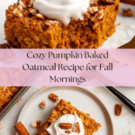 This Pumpkin Baked Oatmeal is a cozy, wholesome breakfast that’s perfect for fall or any time you want a comforting, nutritious start to your day. Packed with warm spices, creamy pumpkin puree, and hearty oats, it’s naturally sweetened with maple syrup and enriched with a crunchy pecan topping. Easy to prepare and baked to golden perfection, it’s a delicious way to enjoy oatmeal with a flavorful twist.
