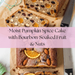 Keywords: pumpkin spice cake, icebox cake, bourbon cake, fall dessert, spiced nut cake, dried fruit cake, holiday dessert