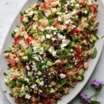 Keywords: quinoa salad, cannellini bean salad, Mediterranean salad, vegetarian salad, healthy meal, feta cheese salad