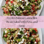 A refreshing and nutritious Quinoa Cannellini Bean Salad combining fresh vegetables, protein-packed beans, and wholesome quinoa, tossed in a zesty olive oil and lime dressing, finished with a sprinkle of crumbled feta cheese. Perfect as a light meal or a vibrant side dish.