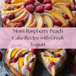 This Raspberry Peach Cake is a moist and tender dessert featuring fresh or frozen raspberries and juicy yellow peaches baked into a delicate cake. Made with Greek yogurt for a subtle tang and a tender crumb, this cake uses a convection or regular oven for baking and is perfect for a summer gathering or an afternoon treat. Its combination of sweet and slightly tart fruit paired with a fluffy vanilla-flavored cake makes it irresistible.