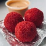 - Step 7: After chilling, roll each cream cheese ball in the red velvet cake crumbs until fully coated. Use your hands to reshape any uneven bites for a neat finish.