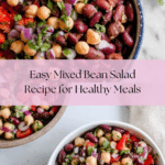 Keywords: mixed bean salad, bean salad, easy salad, vegetarian salad, gluten free salad, healthy salad, no-cook salad, summer salad