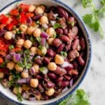 Keywords: mixed bean salad, bean salad, easy salad, vegetarian salad, gluten free salad, healthy salad, no-cook salad, summer salad