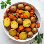 This flavorful Roasted Potatoes and Carrots recipe features tender creamer potatoes and sliced carrots tossed in a fragrant garlic herb butter, then oven-roasted to golden perfection. It’s an easy and comforting side dish perfect for any meal.