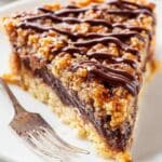 This Samoas Cookie Pie is a decadent dessert inspired by the beloved Girl Scout cookie. Featuring a buttery crust topped with layers of semi-sweet chocolate chips, toasted shredded coconut, gooey sweetened condensed milk, and luscious caramel sauce, all finished with a chocolate drizzle, this pie combines crunchy, chewy, and creamy textures for an irresistible treat perfect for any occasion.
