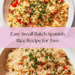 Keywords: Spanish rice, small batch rice recipe, stovetop rice, savory rice side dish, easy Spanish rice