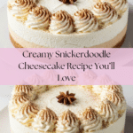 Snickerdoodle Cheesecake combines the beloved cinnamon-sugar flavors of snickerdoodle cookies with a rich and creamy cheesecake. This delightful dessert has a buttery cookie crust and a smooth filling, perfect for any occasion.